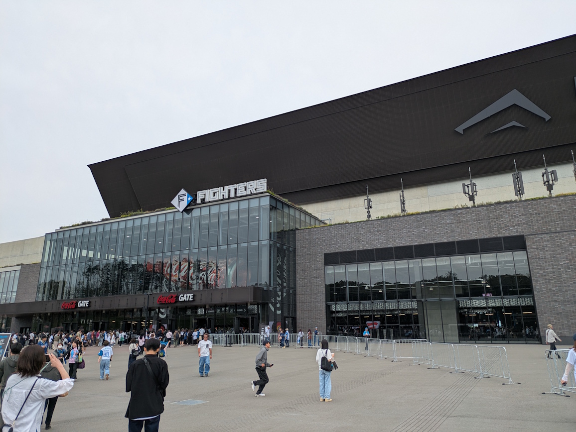 初めてのエスコン。広々とした球場と、その周辺エリア全体が“テーマパーク”のような雰囲気。 球場内の飲食店も充実しており、よなよなエールや裏路地ラーメンテラスは少し並ぶ程度で購入できました。